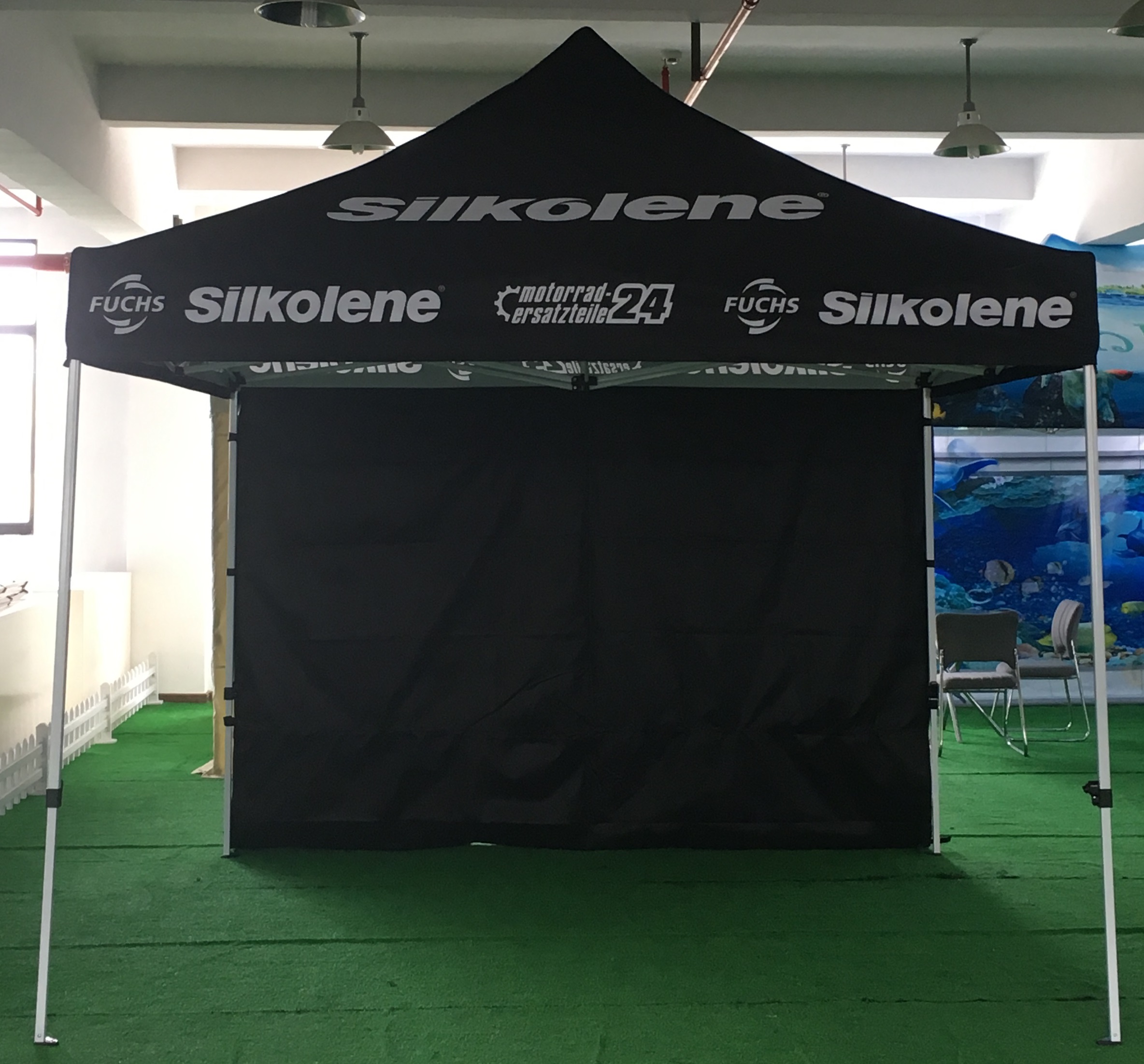 Schnell und einfach aufzubauendes Scherenzelt, mit dem man seinem Rennteam einen professionelles Erscheinungsbild auf dem Rennplatz verleit und dem Rennfahrer, sowie der Mechanikercrew einen idealen Sonnen- und Wetterschutz bietet.