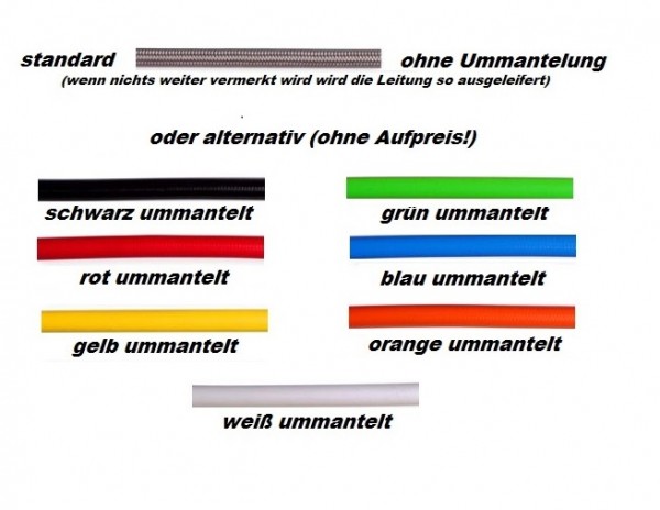 Bitte vermerken Sie bei der Bestellung (im Warenkorb), in welcher Farbe Sie die Stahlflexleitung und die Anschlüsse geliefert haben möchten!